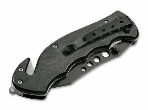 Veiligheid en functionaliteit worden gegarandeerd door de Linerlock-vergrendeling en het robuuste handvat van zwart geanodiseerd aluminium met het embleem van de eenheid. De geïntegreerde glasbreker en gordelsnijder komen van pas in noodgevallen, terwijl de zakclip zorgt voor comfortabel dragen en directe beschikbaarheid.