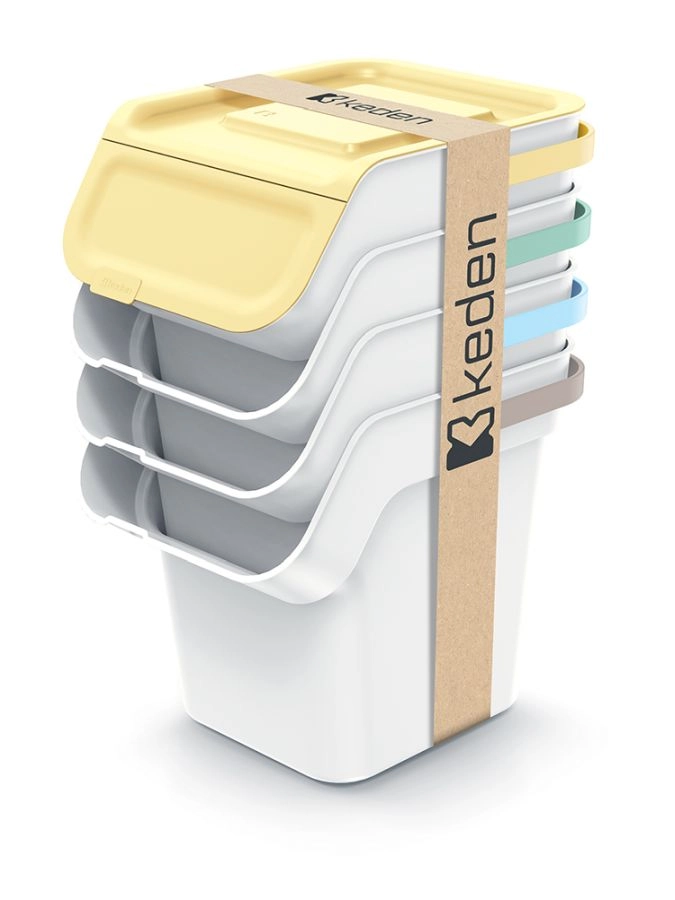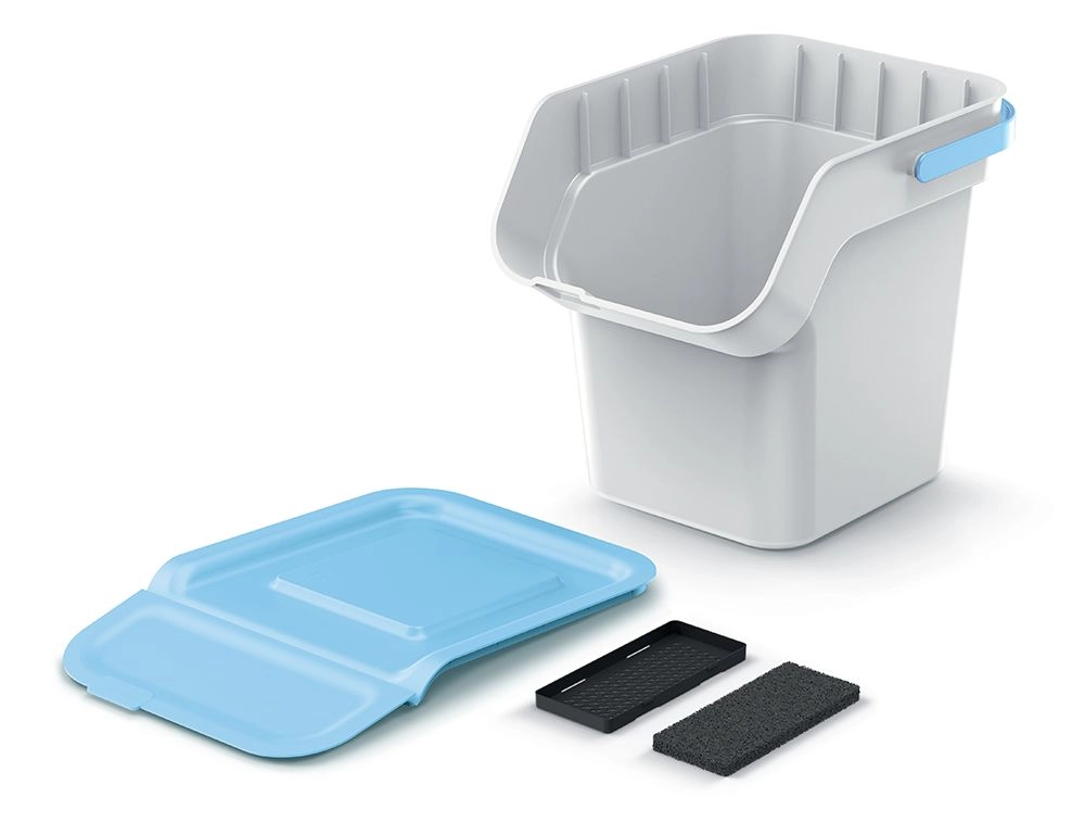 De set stapelbare bakken is ontworpen voor gemakkelijk en hygiënisch scheiden van papier, plastic, glas en gft. Dankzij het afneembare koolstoffilter in het deksel wordt de verspreiding van geuren effectief beperkt en blijft de lucht in de ruimte fris. De lichte, duurzame kunststof constructie met handmatige opening vergemakkelijkt zowel gebruik als reiniging.