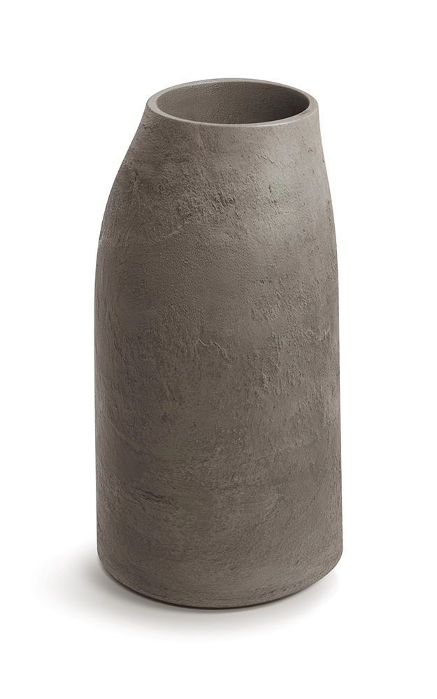 De slanke, afgeronde vorm en de matte, steengoedachtige textuur geven karakter aan de ruimte en laten groen of droogboeketten extra opvallen.