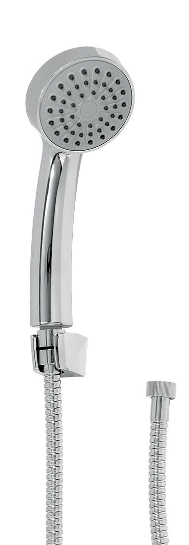 Compacte MINI doucheset in elegant chroom biedt alles wat je nodig hebt voor een snelle installatie en comfortabel douchen. Bevat een 1-stand douchekop, een metalen slang van 150 cm en een praktische douchehouder. Een uitstekende oplossing voor kleinere badkamers, vakantiehuisjes en renovaties.
