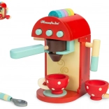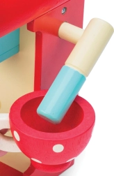 Deze kwalitatieve houten koffiemachine biedt kinderen een authentieke koffie-ervaring. Gekleurde capsules kunnen in de hendel worden geplaatst en drank kan “gezet” worden rechtstreeks in het beschilderde kopje; er is ook een melkopschuimer en een lepeltje. De capsules kunnen handig worden opgeborgen in de opening aan de bovenkant van de machine, zodat alles binnen handbereik is.