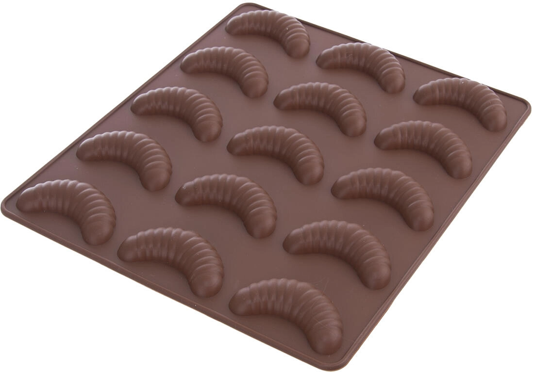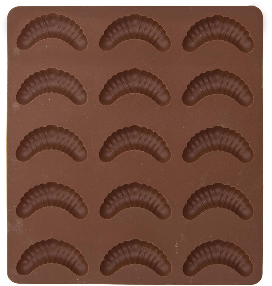 Bak uw favoriete vanillemaantjes en andere zoetigheden snel en moeiteloos. Deze praktische siliconen vorm maakt het mogelijk om 15 maantjes tegelijk te bereiden en dankzij het antiaanbakoppervlak brandt het deeg niet aan en losten de afgewerkte stukjes eenvoudig. De bruine kleur past in uw keuken en de hoogwaardige siliconen zorgen voor een lange levensduur.