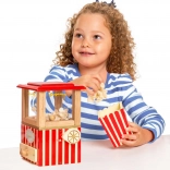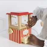 Stap in de wereld van bioscoopspel met deze gedetailleerde popcornmaker die elke kinderkamer laat stralen. De combinatie van hoogwaardig massief hout, een werkende hendel voor “poffen” en accessoires zoals vilten popcornstukjes, een lade en een gestreept bakje, trekt kinderen urenlang in het spel. Er zijn ook bioscooptickets en kaartjes voor zoete/zoute popcorn voor nog rijker rollenspel.
