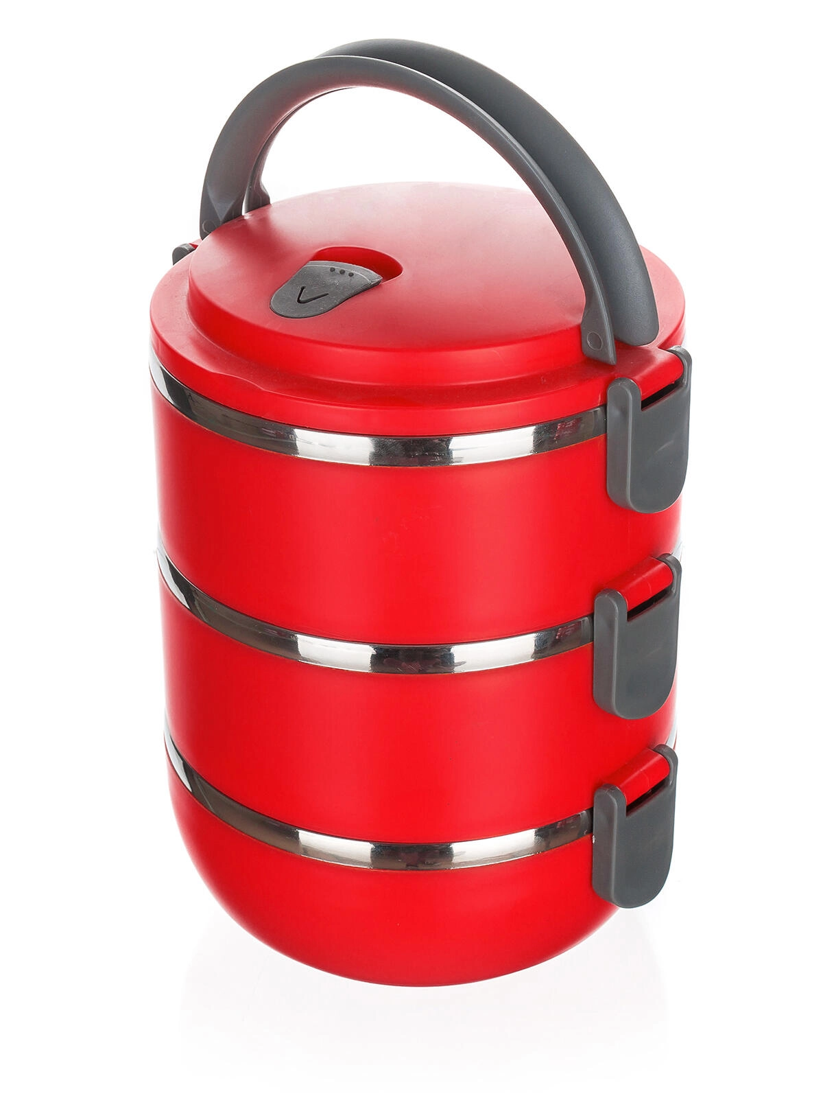 Geniet van comfortabel je lunch meenemen naar werk, school of onderweg. De driedelige voedselcontainer CULINARIA Red biedt drie aparte bakjes (3 × 0,55 l) voor overzichtelijke scheiding van soep, hoofdgerecht en bijgerecht. De binnenkant is van hoogwaardig roestvrij staal 201 voor beter warmtebehoud en eenvoudig reinigen, de buitenmantel van duurzaam polypropyleen beschermt tegen verbranding en verhoogt de robuustheid tijdens transport.