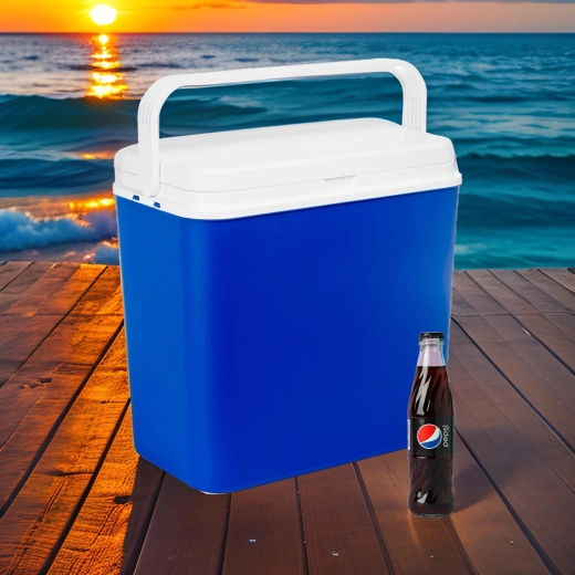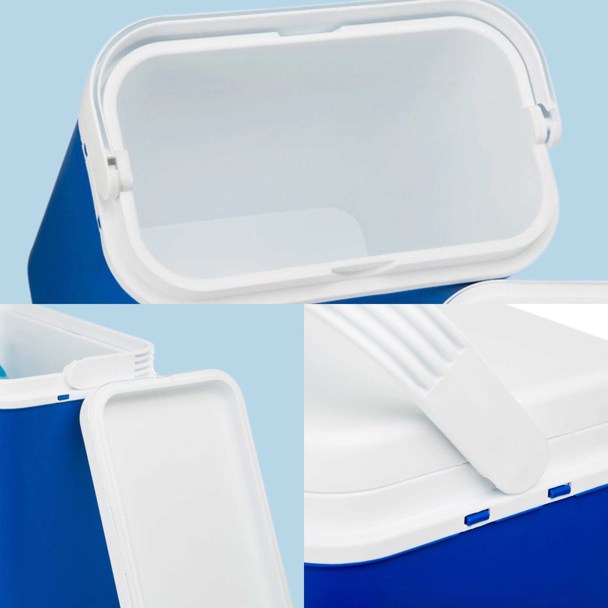 De KAMAI ATLANTIC 30 l is een betrouwbare passieve koelbox voor dagelijkse uitstapjes en langere reizen. Plaats simpelweg koelelementen en ga op pad – de royale binnenruimte biedt plaats aan flessen, blikjes en vers fruit, terwijl de geavanceerde isolatie de lage temperatuur langdurig behoudt. Het elegante blauwe design met wit deksel past op het strand, op de camping en in de tuin.