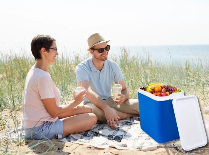 Dankzij het hoogwaardige materiaal is het oppervlak gemakkelijk schoon te maken en bestand tegen normaal slijtage. De geprofileerde bovenste handgreep zorgt voor comfortabel dragen, terwijl de compacte vorm goed in de kofferbak of onder de stoel past. Gecertificeerde materialen voor contact met voedsel garanderen veilige opslag van je lekkernijen.