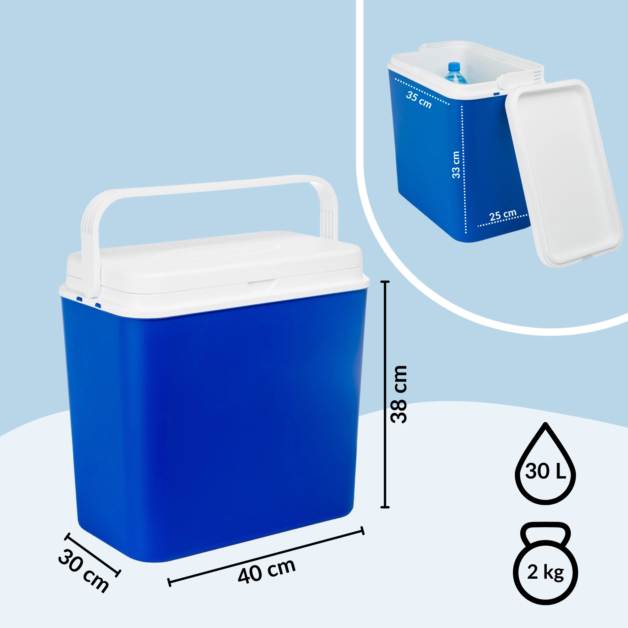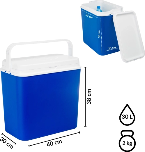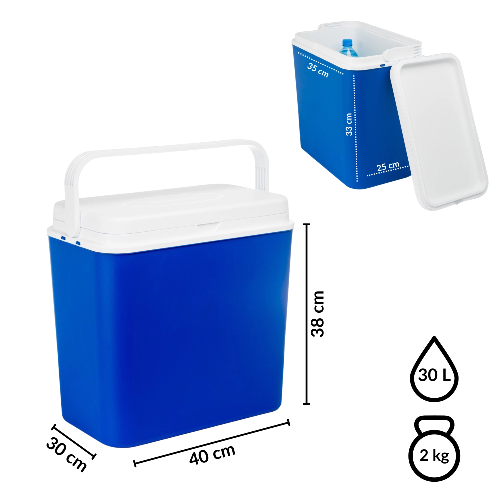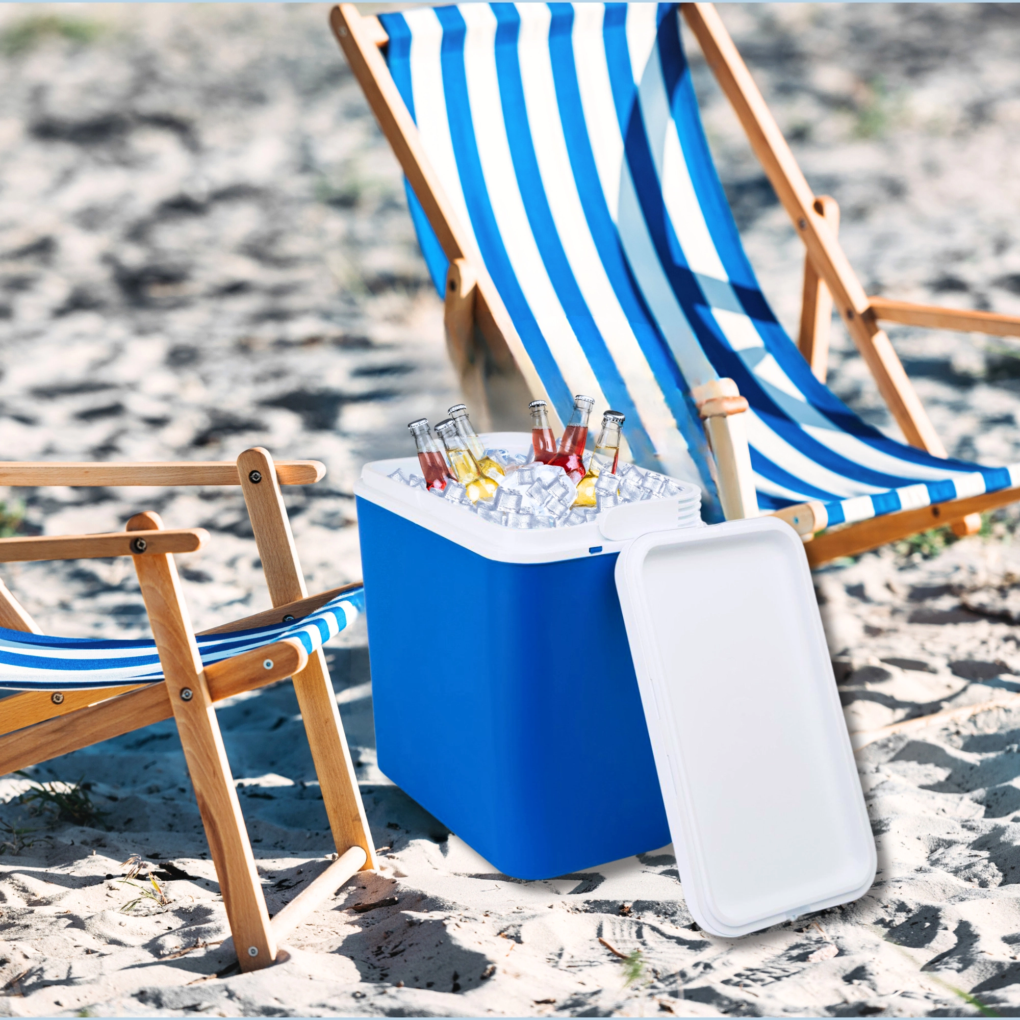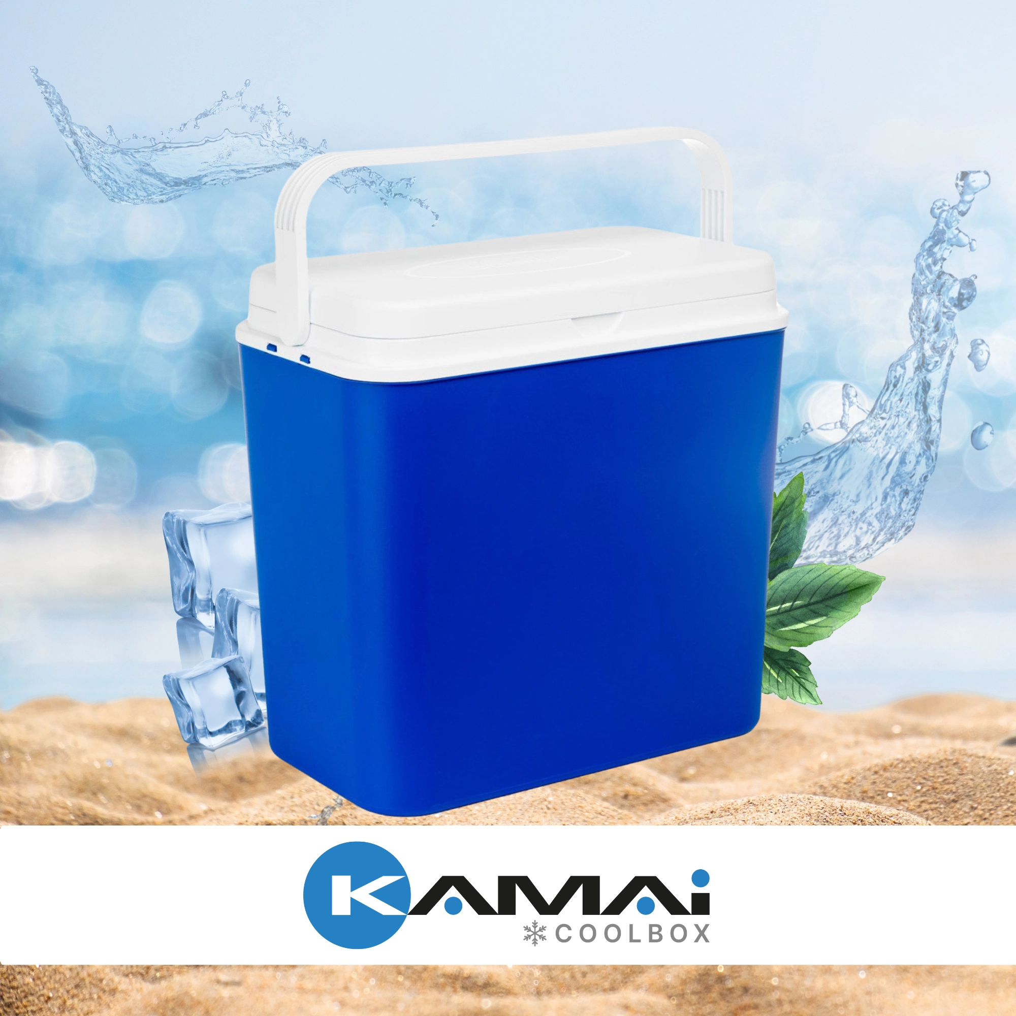 De ruime en lichte reis-koelbox KAMAI ATLANTIC met een inhoud van 30 l houdt je drankjes en etenswaren langdurig koud dankzij hoogwaardige isolatie en het gebruik van koelelementen. Het duurzame ontwerp van polypropyleen, het eenvoudige onderhoud en de stevige, inklapbare draaggreep maken hem ideaal voor auto, caravan, strand, picknick en aan het water. Gemaakt in de EU, conform de voedselveiligheidsnormen.