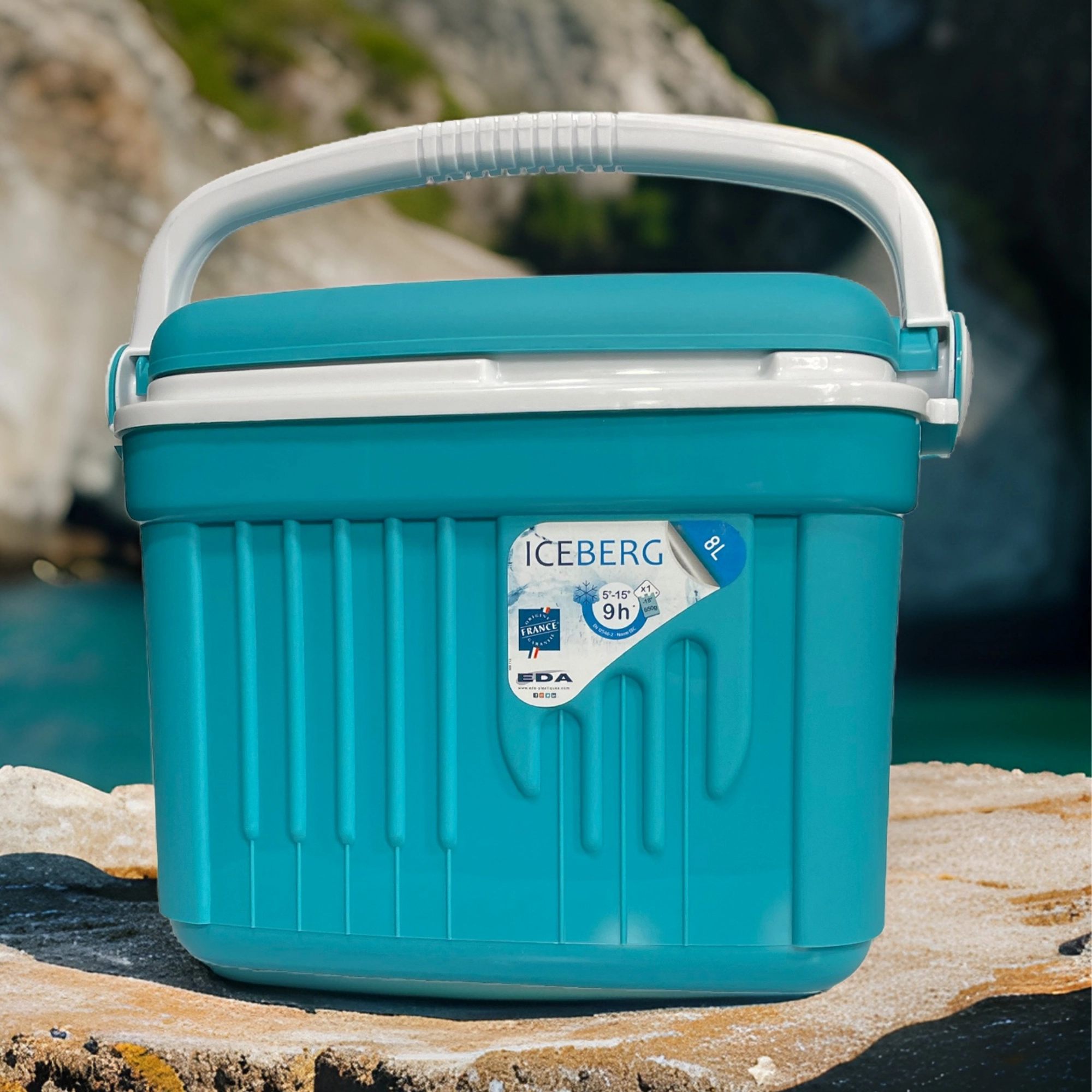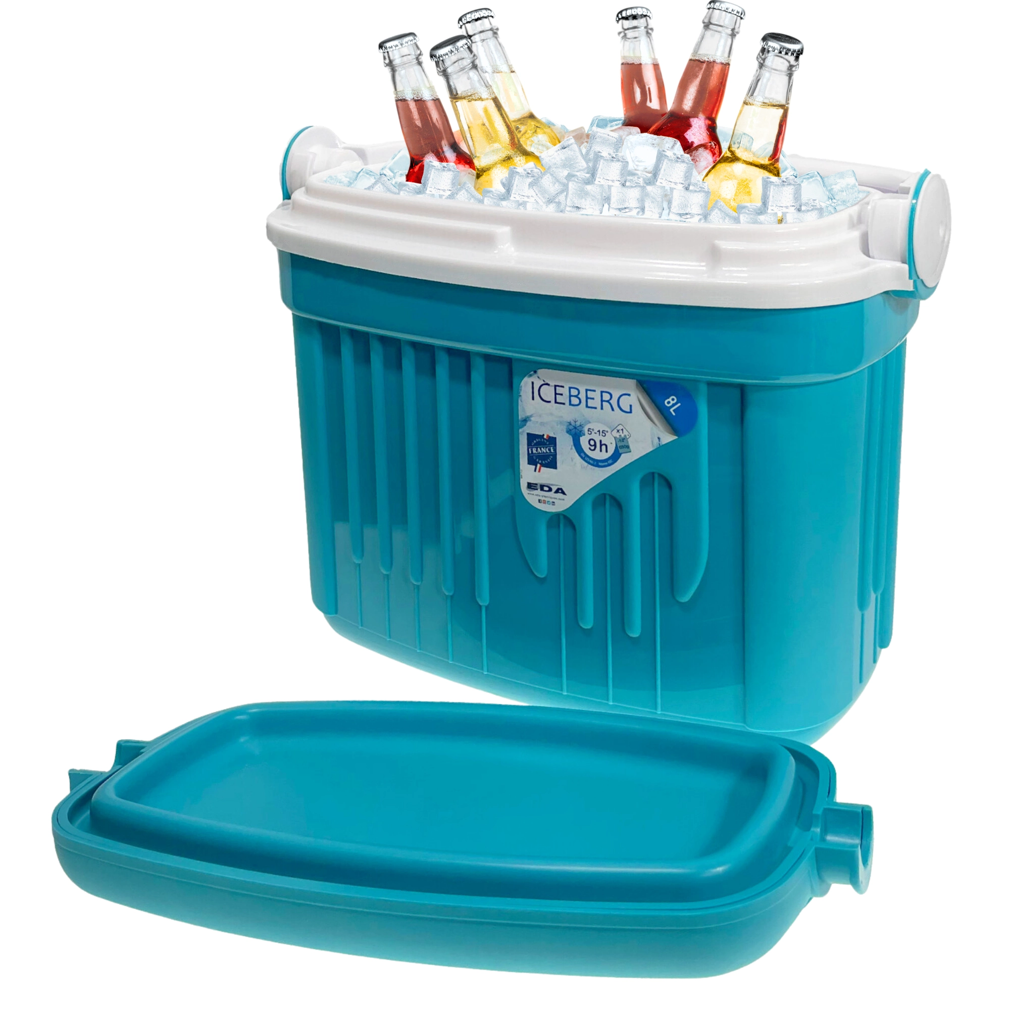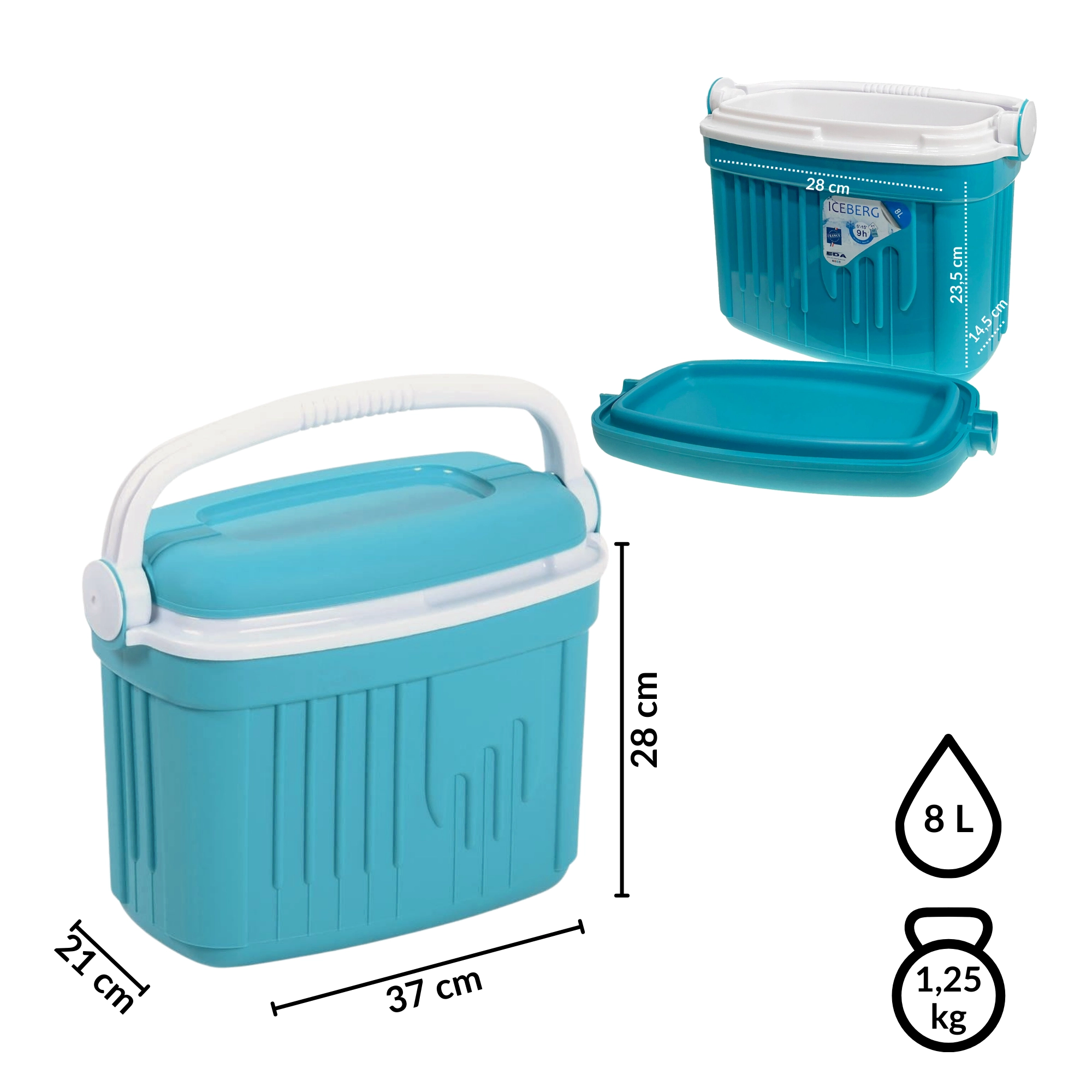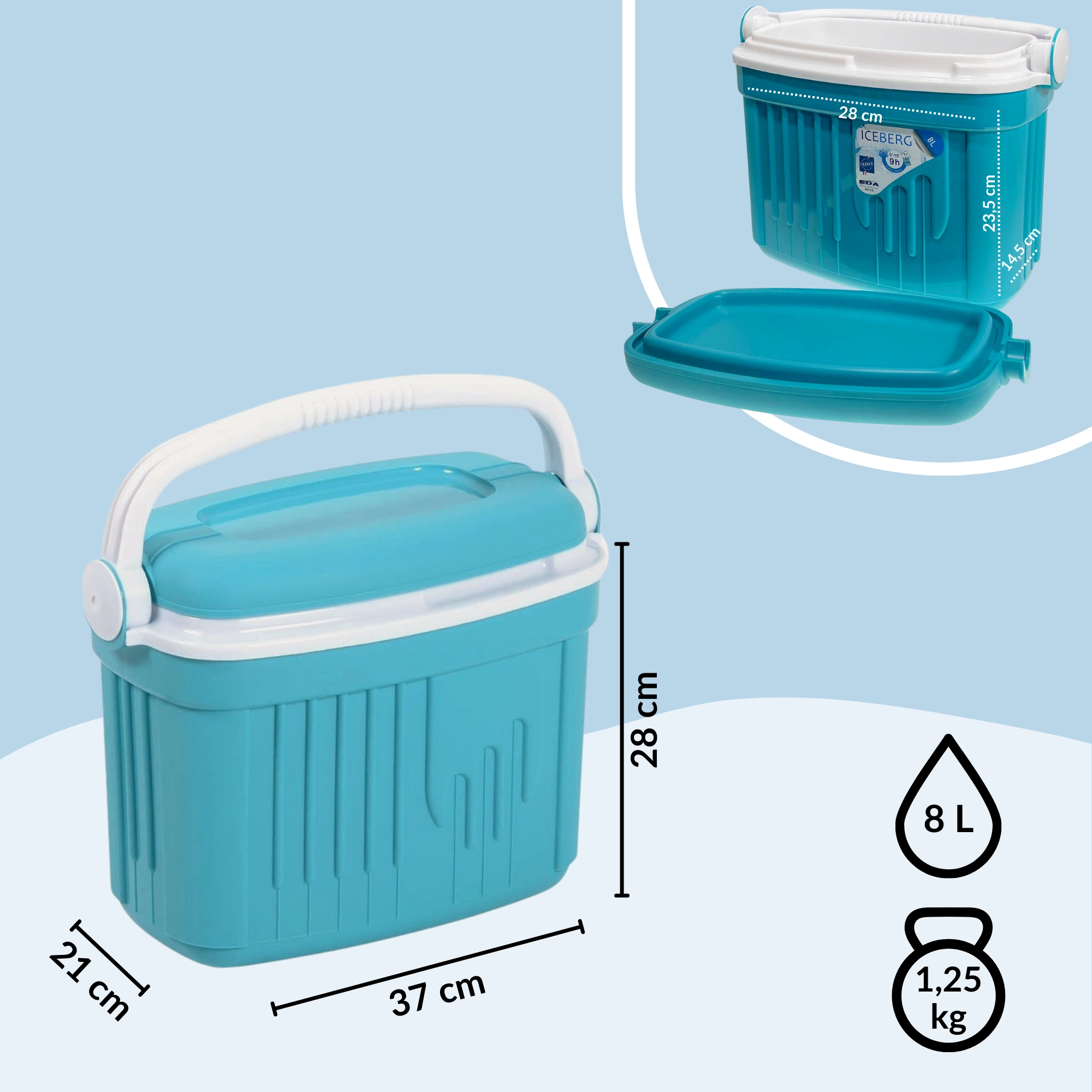 Koelbox 8 l KAMAI ICEBERG voor op reis, turquoise met witte handgreep