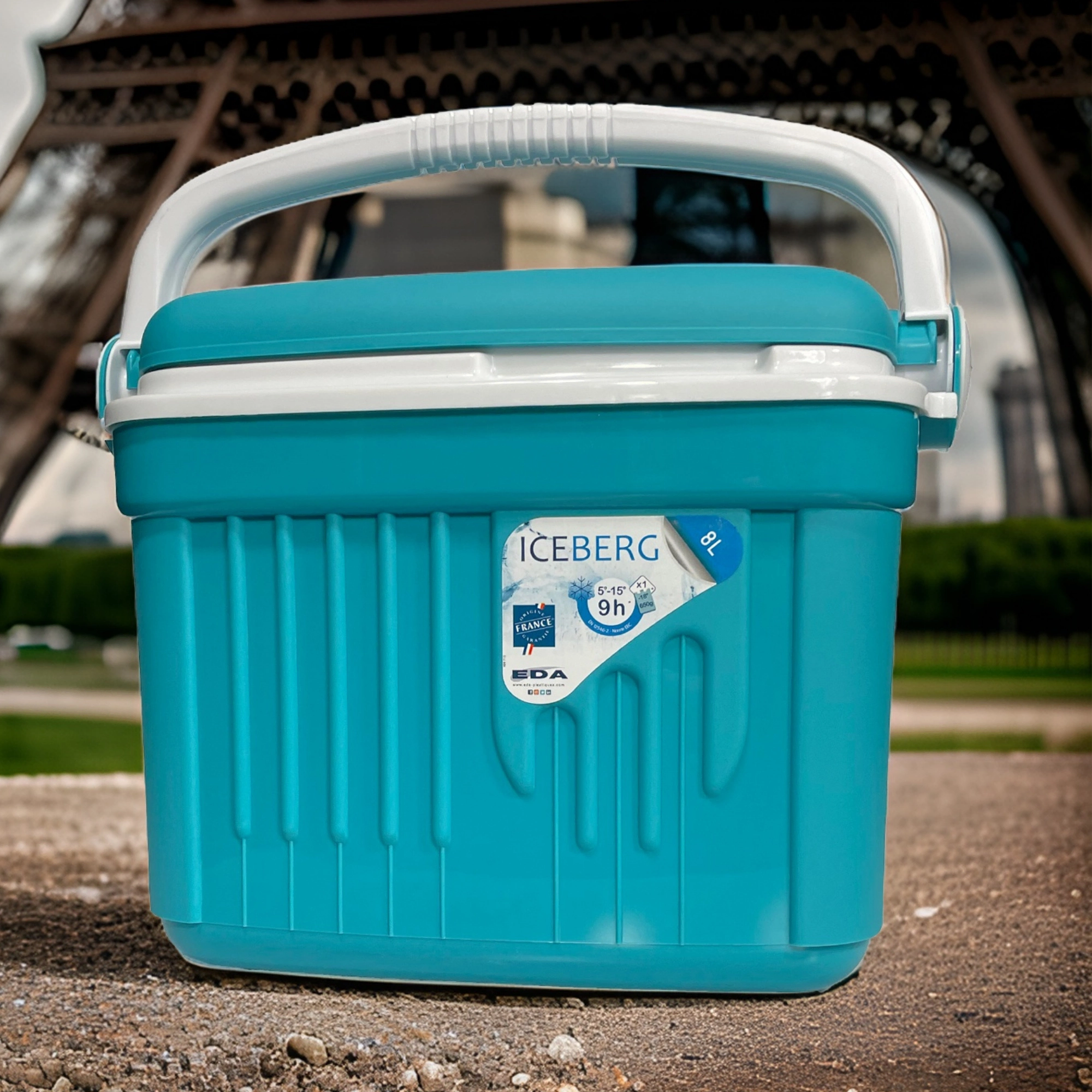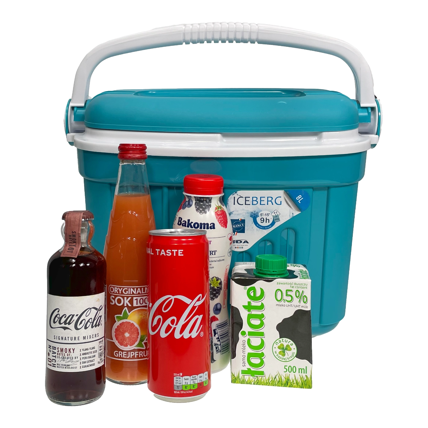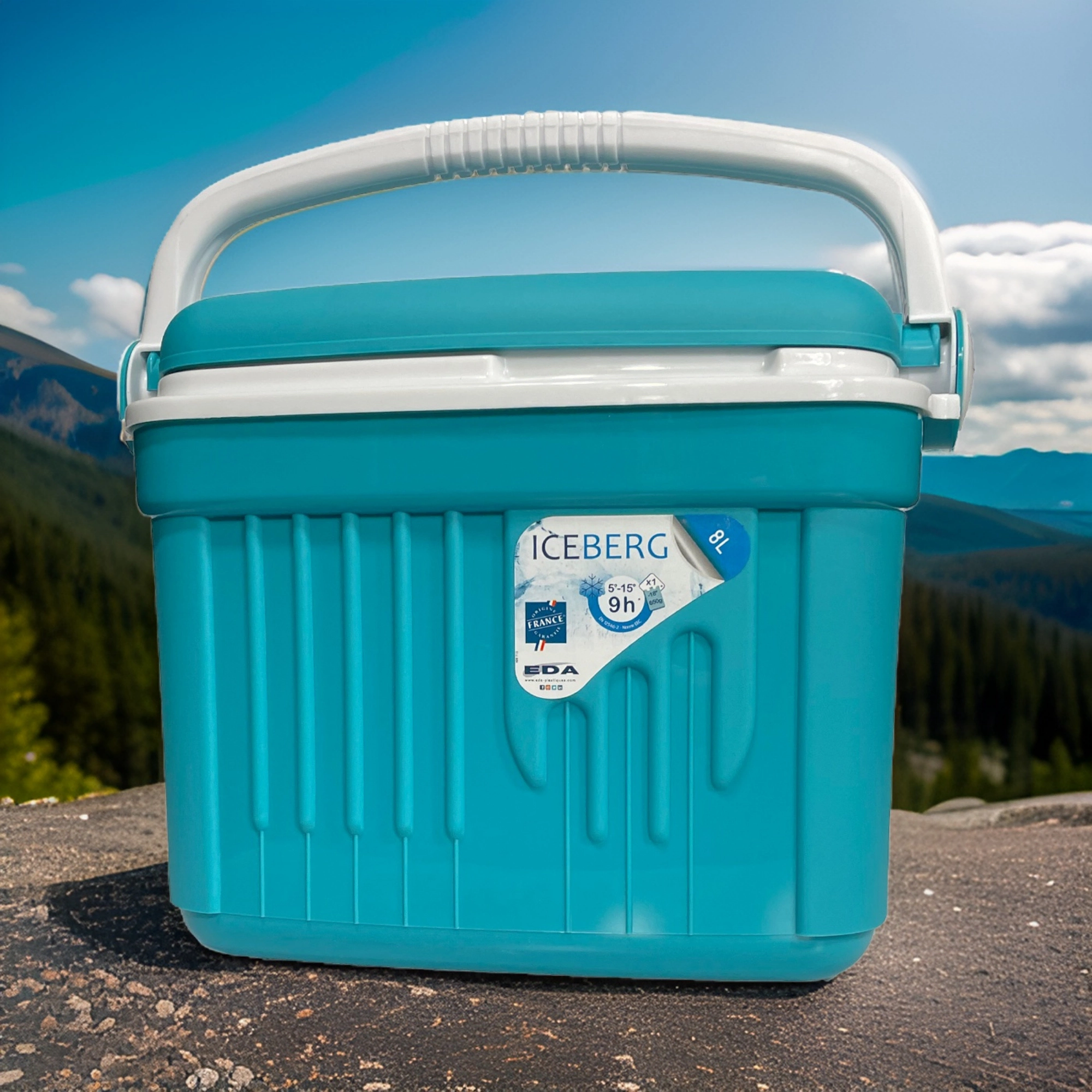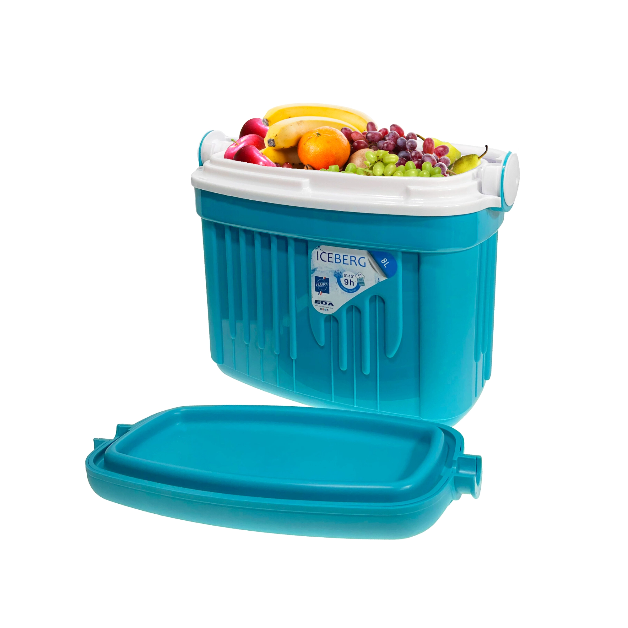 Koelbox 8 l KAMAI ICEBERG voor op reis, turquoise met witte handgreep