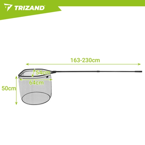 Praktisch TRIZAND-schepnet met telescopische steel tot 230 cm voor veilig landen van vissen zonder beschadiging. Voorzien van een diep, sneldrogend net, een lichte en sterke aluminium frame, een opvouwbare constructie voor eenvoudig transport en een antisliphandgreep voor zekere grip bij elk weer.