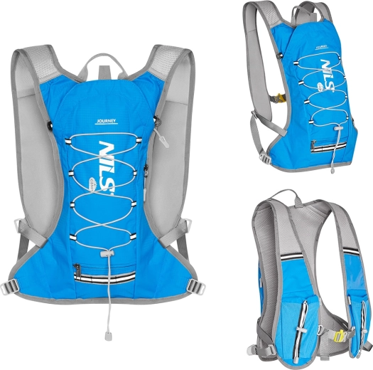 De lichte en duurzame hardlooprugzak NILS Camp Journey met een inhoud van 12 l is ideaal voor dagtochten, hardlopen, wandelen en fietsen. Hij biedt voorbereiding voor een hydrovak, een geïsoleerd hoofdvak tegen opwarming van de drank door de rug, ademende rugpanelen en reflecterende elementen voor extra veiligheid. Praktische vakken en een bungeesysteem houden alles wat je nodig hebt binnen handbereik en stevig vastgezet.