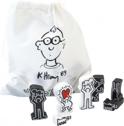 Inclusief textiele zak met KEITH HARING-motief voor veilig en gemakkelijk transport en opbergen van de stukken.