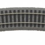 Gebogen spoor van het merk PIKO met een gedetailleerde reproductie van houten dwarsliggers op ballastbed. Ideaal voor modelbouwers die op zoek zijn naar een getrouwe uitvoering en hoogwaardige kwaliteit.