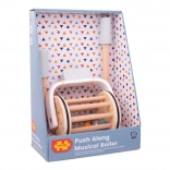 De prachtig ontworpen muzikale rol, gemaakt van 100% FSC® hout, ondersteunt niet alleen de motoriek, maar ook de zintuiglijke vaardigheden van uw kinderen. Door de beweging en het geluid van het belletje dat tussen de houten latten schommelt, ontwikkelt het kind zijn gehoorvaardigheden. Het speelgoed bestaat uit een combinatie van natuurlijk en gekleurd hout, waarbij de kleuren de visuele waarneming stimuleren.