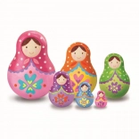 Elk van de 6 houten poppetjes past stap voor stap in elkaar, zodat je een bonte set traditionele Russische poppetjes maakt met een moderne, persoonlijke stijl. Een geweldig idee voor een cadeau en een gezellige familie-activiteit.