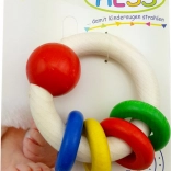 De rammelaar is ontworpen voor ontwikkeling van fijne motoriek bij kinderen en trekt de aandacht door zijn eenvoud en pasteltinten. Ethiek vervaardigd van hout uit duurzaam beheerde bossen en behandeld met ecologische, duurzame verf is het ideaal voor dagelijks gebruik. Vermijd overmatig contact met water om de levensduur te verlengen, en reinig het speelgoed alleen met een vochtige doek.