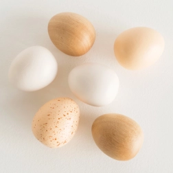 - Inhoud van de verpakking: 6 houten eieren + 1 houten kistje met handgrepen