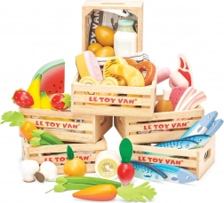 Deze tijdloze set ontwikkelt de fijne motoriek, sociale en communicatieve vaardigheden en stimuleert rollenspel in de kinderkeuken of het winkeltje. Combineert perfect met andere houten etenswaren en kistjes van LE TOY VAN voor een nog rijkere speelwereld.