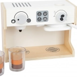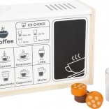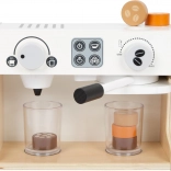 Met zijn professioneel ontwerp kunnen kinderen verschillende soorten koffie bereiden en zich echte barista’s voelen. De draaiknoppen met klikgeluid verhogen de realistische spelbeleving. Aan de achterkant zit ook een bord om met krijt het dagmenu te noteren, wat de creativiteit prikkelt.