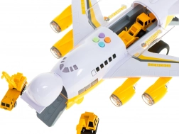 Deze multifunctionele set combineert een transportvliegtuig met een mini-bouwwereld. Autootjes kunnen het vliegtuig inrijden via de neerklapbare voorste laadklep en dankzij het openende bovendek hebben kinderen gemakkelijk toegang tot de lading. De motoren lichten op met LED-lampen, wat de realistische speelervaring versterkt.