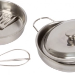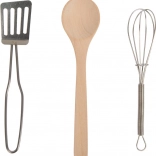 De pan met afneembaar deksel draagt bij aan realistische speelscenario’s en stimuleert de verbeelding. De houten lepel samen met metalen tools zoals de spatel en garde bieden een brede keuze aan speelmogelijkheden. De stoffen ovenwant en de pannenonderzetter geven een authentiek tintje en dragen bij aan de veiligheid tijdens het spel.