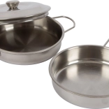 Bevat een pan met deksel, koekenpan, garde, spatel en houten lepel die helpen bij het spelen van kok.
