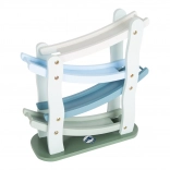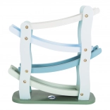 De houten kaskadebaan SMALL FOOT Blue is een geweldige speelkameraad voor kinderen vanaf 18 maanden. De autootjes starten vanaf de bovenste verdieping en zoeven over de schuine hellingen naar beneden, terwijl ze spectaculair omklappen – dit alles stimuleert concentratie, geduld en plezier in het ontdekken van oorzaak en gevolg.