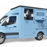 Deze gedetailleerde paardenvervoerder is gebaseerd op de populaire bedrijfswagen MERCEDES‑BENZ Sprinter. Kinderen zullen genieten van de functionele cabine met te openen deuren, de realistische opbouw voor veilig transport en de vele speelmogelijkheden – van laden via de helling tot een tussenschot dat is aangepast voor twee paarden.