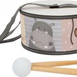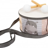 De praktische, in lengte verstelbare riem laat kinderen ook tijdens het lopen spelen. Past zich gemakkelijk aan het postuur van het kind aan en houdt de trommel op zijn plaats.