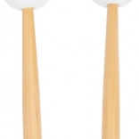 Twee stokjes met witte, bolvormige koppen zorgen voor een zachte, zuivere toon die vriendelijk is voor kinderoren en langer spelen zonder lawaai ondersteunt.