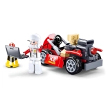 Deze leuke bouwset brengt alles wat kinderen leuk vinden: snelheid, creativiteit en duurzaamheid. Dankzij het opwindmechanisme rijdt de skelter na het opwinden echt weg, wat interactief spel en verbeelding stimuleert. SLUBAN-minifiguren hebben draaibare en scharnierende delen, zodat de racer eenvoudig achter het stuur kan plaatsnemen en op het circuit kan trainen.