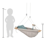 De stof van het ligoppervlak past zich optimaal aan de lichaamsvorm van het kind aan en is gemakkelijk te onderhouden. De houten constructie is vervaardigd uit hoogwaardige natuurlijke materialen die ecologie en veiligheid benadrukken. Het draagvermogen van de schommel is tot 30 kg, wat langdurig gebruik garandeert.