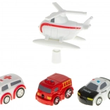 Bevat drie voertuigen: ambulance, brandweerwagen en politieauto, waarmee verschillende reddingsmissies en dynamische scenario's kunnen worden gesimuleerd.