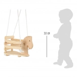 De houten schommel in de vorm van een paardje is een uitstekende keuze voor de eerste schommelervaringen. Het zorgvuldig afgewerkte massieve hout in een natuurafwerking is duurzaam en desgewenst klaar voor een kleurrijke afwerking naar eigen smaak. De verhoogde veiligheidsbeugel, rugleuning en handgrepen aan de zijkanten bieden maximale stabiliteit en veiligheid, ook voor de kleinste ruiters.