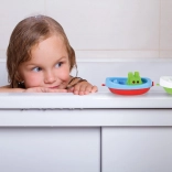 Drie kleurrijke bootjes drijven en kunnen in bad, in het zwembadje en op het droge worden gebruikt. Eenvoudige vormen en vrolijke kleuren nodigen uit tot spelen.