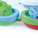 De bootjes kunnen met haakjes tot een treintje worden verbonden, wat het spel verlengt en kinderen eenvoudige constructieprincipes leert.