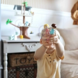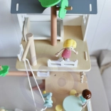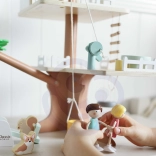 De verpakking bevat 31 onderdelen, waaronder 2 kinderfiguren, 2 dieren en accessoires zoals een schommel, bandenschommel, wip-schommel, bed, tafel, stoel en een schatkist. Zorgvuldig afgewerkt natuurlijk hout met zachte kleuren is duurzaam en prettig om aan te raken.