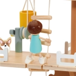 Boomhut, 2 kinderfiguren, 2 dieren, schommel, bandenschommel, wip-schommel, bed, tafel, stoel, schatkist, accessoires