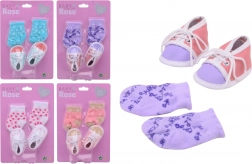 Schattige set sokjes en schoentjes voor poppen, ideaal voor alle kleine poppenouders. Past perfect op poppen met een lengte van 40 cm en brengt extra plezier in het dagelijks spelen. Kwalitatieve afwerking en eenvoudig aan- en uittrekken, leuk voor kinderen vanaf 3 jaar.