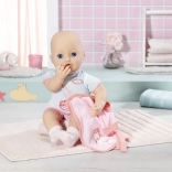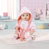 Laat je Baby Annabell betoverende momentjes beleven met deze stijlvolle badjas en pyjama. De badjas is versierd met vleugeltjes, waardoor het niet alleen modieus is maar ook een comfortabele accessoire voor het spel. Onder de badjas draagt de pop een korte onesie met een print van een schaapje dat geniet van een regenboogdouche. Om de voetjes lekker warm te houden, bevat de set ook roze sokken met vleugeltjesmotief.