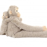 Deze zachte pluchen aap met jong verovert de harten van elke kleine dierenliefhebber. Lange, soepele armen met klittenband laten de aap knus bij het kind liggen of ophangen, terwijl het afneembare jong rollenspel en de fijne motoriek ontwikkelt.