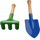 - Metalen schep en harkje – stevige materialen voor echt werk in de border of bloempot.