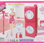 Geef kinderen een realistische speelervaring met de complete set Glorie wasserij. De set bevat een wasmachine die draait na het indrukken van de knop, een droger, een strijkplank, een kapstok, een wasmand en kledinghangers. Ideale aanvulling voor poppenhuizen vanaf 3 jaar.