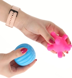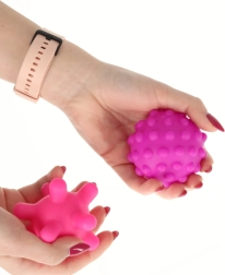 De ballen zijn geschikt om mee te spelen op het droge en in het water. De texturen zijn ideaal voor een zachte massage van handpalmen en voetzolen en zorgen voor rust.