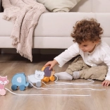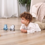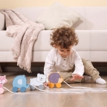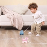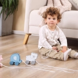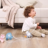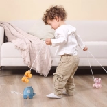 Dankzij de bewegende wielen en de mogelijkheid om te trekken ondersteunt het speelgoed de fysieke ontwikkeling en coördinatie.