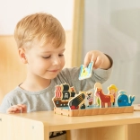 Houten educatieve puzzel Viga is het ideale speelgoed voor kinderen vanaf 18 maanden om hun ruimtelijke oriëntatie en cognitieve vaardigheden te ontwikkelen. Het bevat kleurrijke houten figuren in een boerderij- en zeethema.