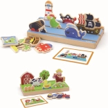 Deze leuke en educatieve puzzel helpt kinderen bij het begrijpen van ruimtelijke relaties en ondersteunt hun cognitieve ontwikkeling. Kinderen kunnen verschillende scènes samenstellen op de meerlagige basis waarmee zowel boerderij- als zeeavonturen mogelijk zijn.