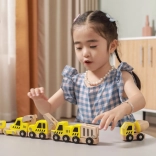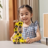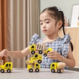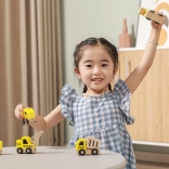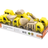 Deze kwalitatieve set bevat 6 verschillende bouwvoertuigen in heldergeel met natuurlijke houtelementen – ideaal voor de eerste races over de vloer en spelen op de bouwplaats. Dankzij de afgeronde vormen en duurzame houten constructie zijn de auto’s veilig en prettig om vast te houden.