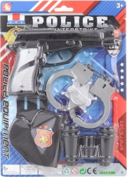 In de set vind je een pistool met een lengte van ca. 19,5 cm met holster, kunststof handboeien voor realistisch spel, een praktische verrekijker om te observeren en een stijlvolle badge om de politierol compleet te maken. De set is ontworpen voor kinderen vanaf 3 jaar en is een geweldig cadeau voor kleine liefhebbers van actiegames.
