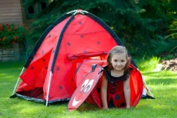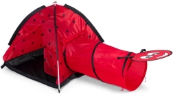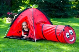 Verander een kamer of tuin in een plek vol avontuur. De kindertent met lieveheersbeestje-motief nodigt kinderen uit tot ontdekken en creatief spel. De iglo-constructie met één ingang en een aansluiting voor de tunnel stimuleert bewegen, kruipen en verstoppen, wat zowel motoriek als fantasie ontwikkelt. Dankzij het lichte frame verplaats je de tent eenvoudig, zodat kinderen er overal van kunnen genieten.